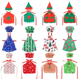 Delantal con estampado de muñecas de moda, gorro de cocinero, estilo de patrón navideño