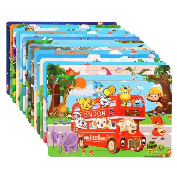 Mas Que Juguetes Productos Juegos y rompecabezas Rompecabezas de madera de 30 piezas Tangram de tráfico de animales de dibujos animados