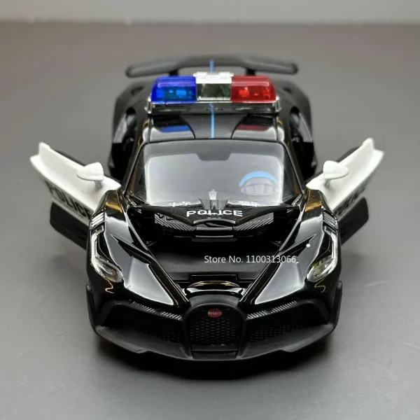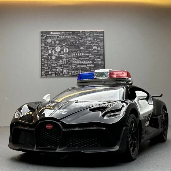 Coche de Policía Bugatti 1:32, Modelo de Aleación con Luz y Sonido, Supercoche Deportivo