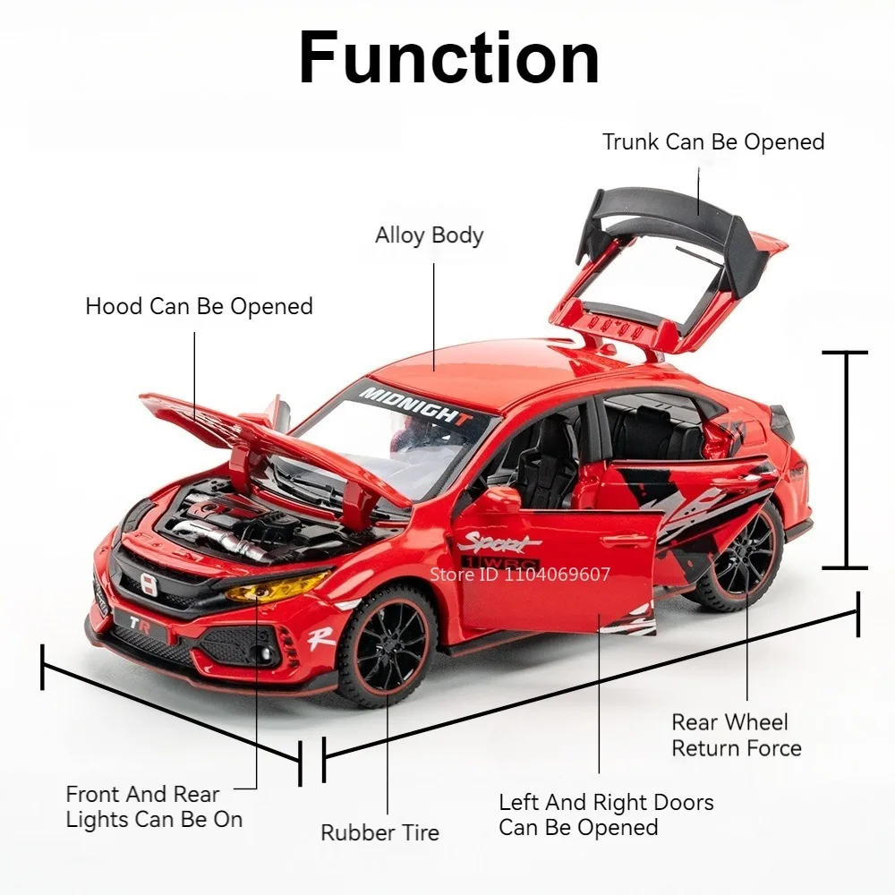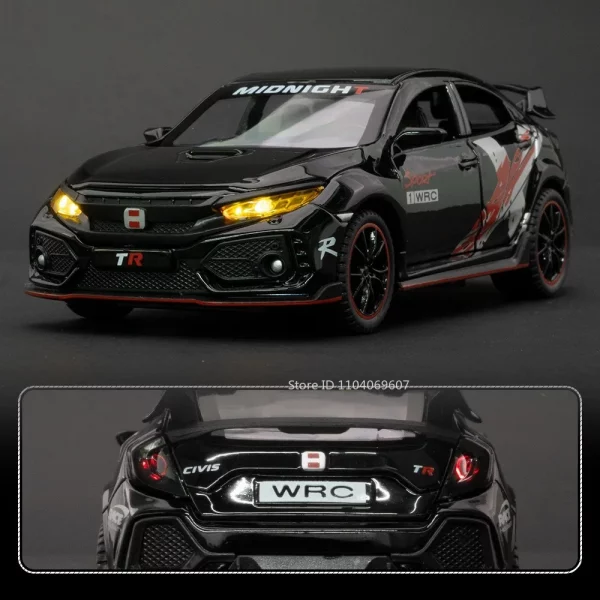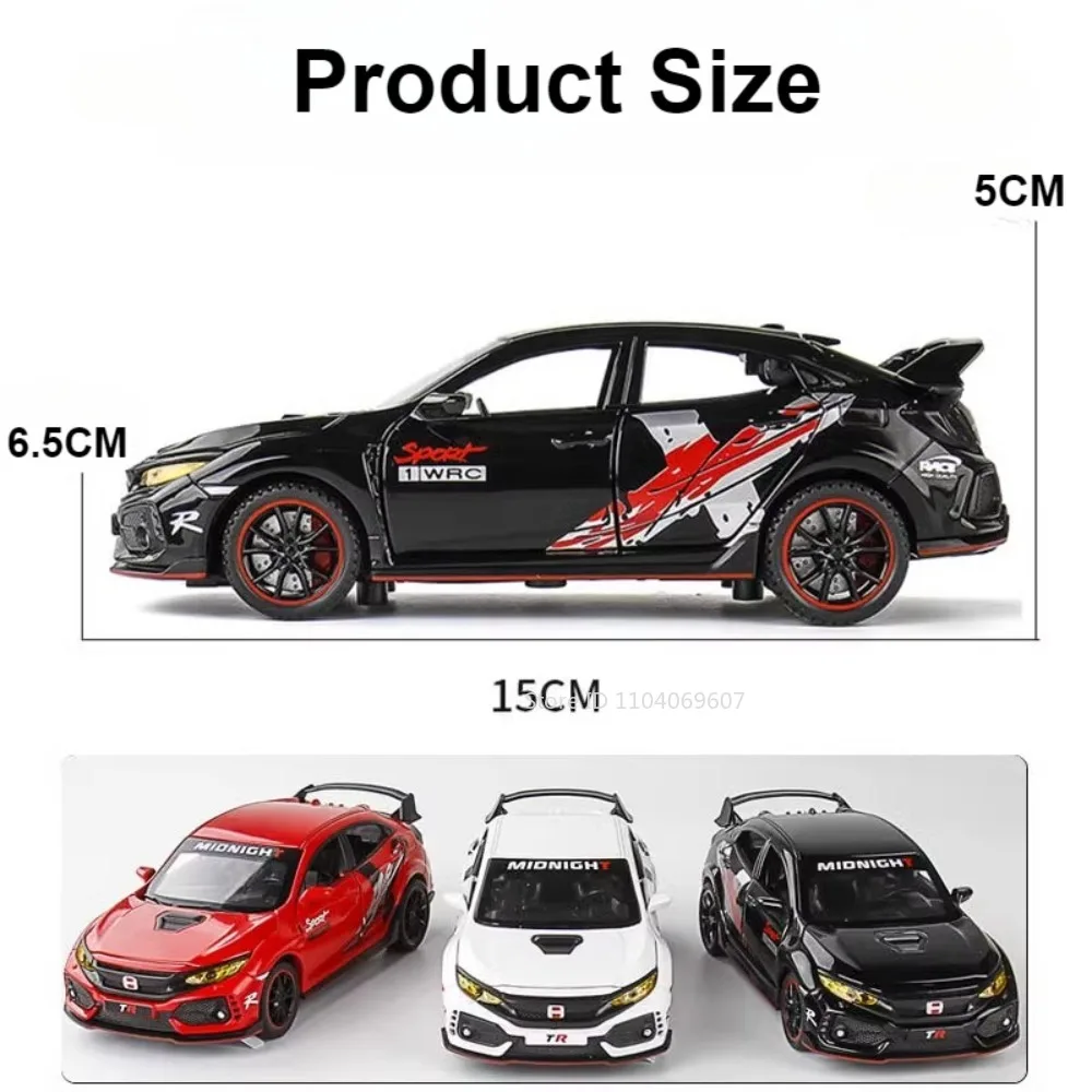 Coche Honda Civic Type-R 1:32, Miniatura con Luz y Sonido