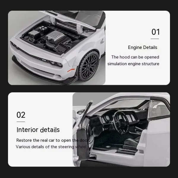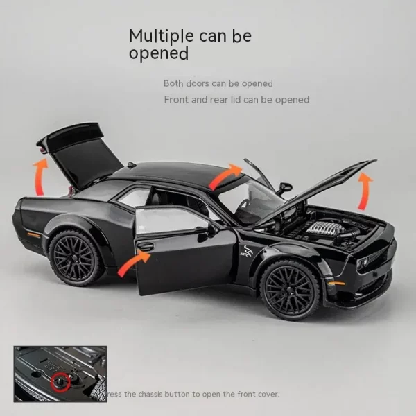 Dodge Challenger Hellcat 1:32, Modelo de Coche de Aleación, Fundido a Presión con Luz y Sonido