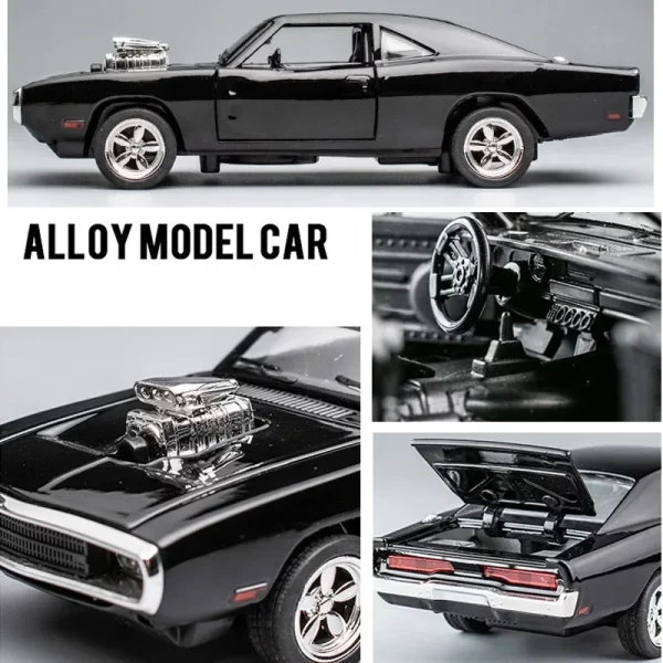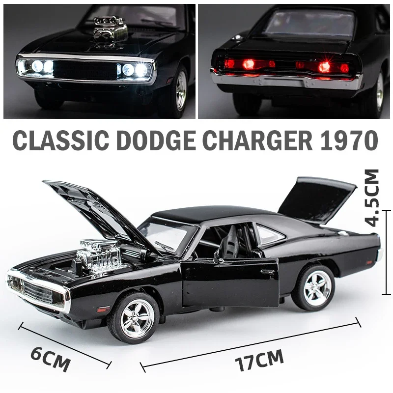 Mas Que Juguetes Productos Vehículo de juguete Dodge Charger 1970 1:32, Coche Deportivo de Aleación con Luz y Sonido, Regalo para Niños