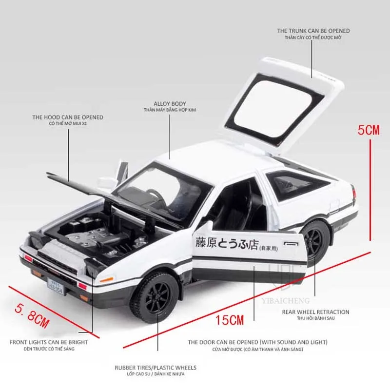 INITIAL D AE86 1:32, Coche de Aleación, Luz y 4 Puertas