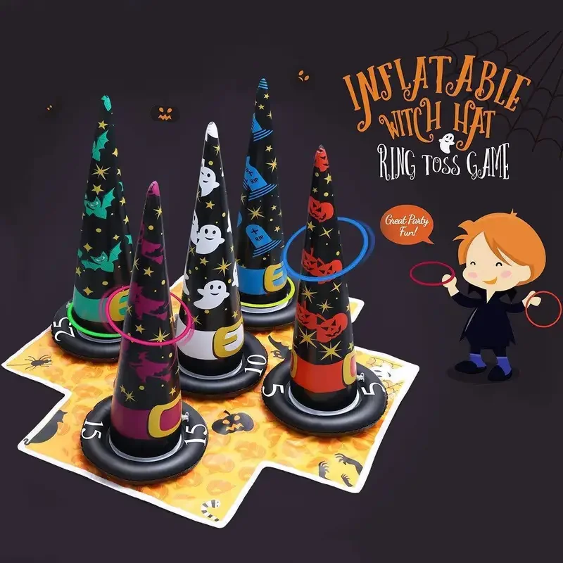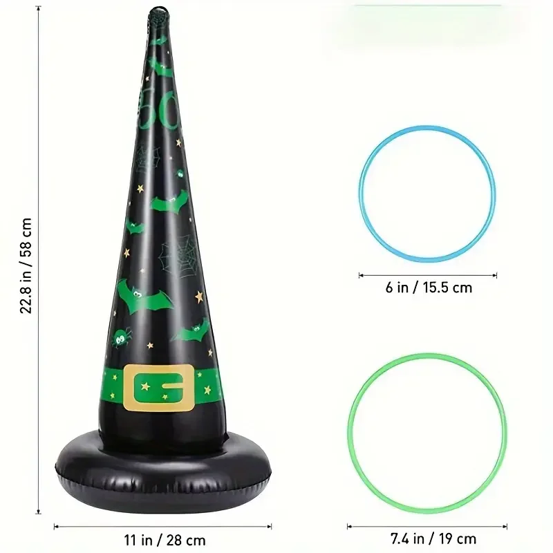 Juego de Lanzamiento de Anillos de Halloween con Sombrero de Bruja Inflable, Fiesta Interior y Exterior