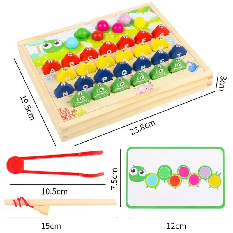 Juguete de Pesca de Madera Montessori, Clasificación de Colores y Alfabeto, Motor Fino para Niños Preescolares