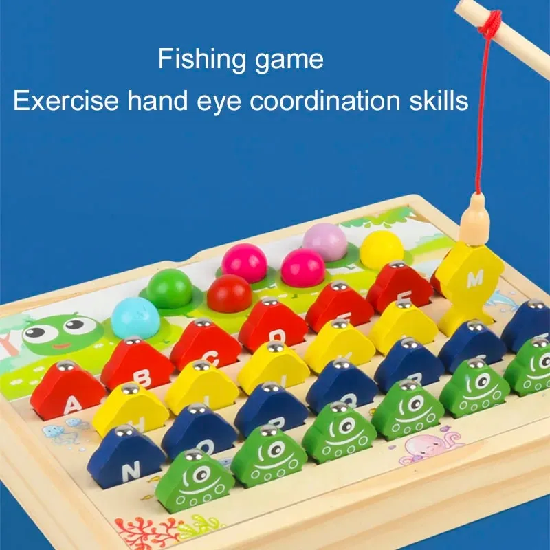 Mas Que Juguetes Productos Vehículo de juguete Juguete de Pesca de Madera Montessori, Clasificación de Colores y Alfabeto, Motor Fino para Niños Preescolares