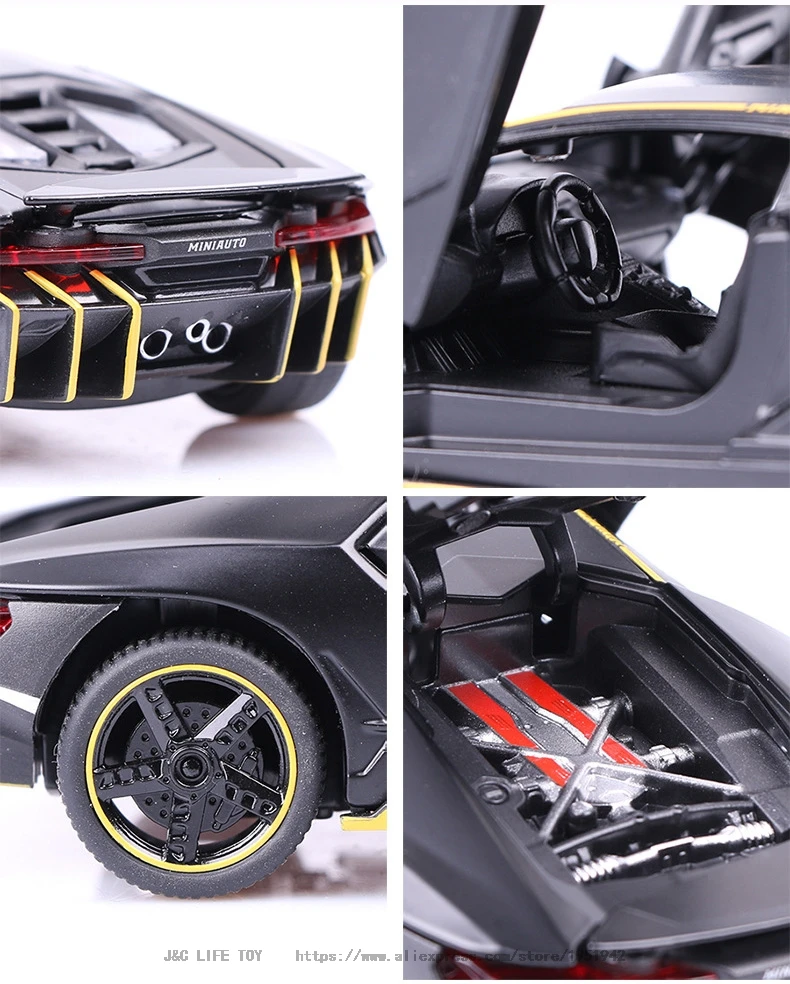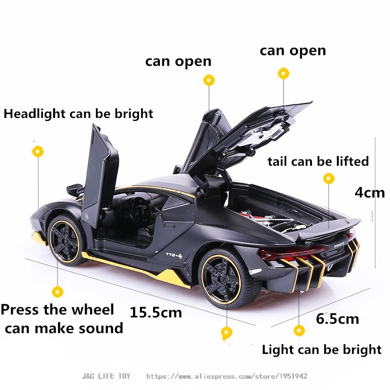 LP770 1:32, Coche Deportivo de Aleación con Luz y Sonido, Supercarreras, Regalo de Navidad