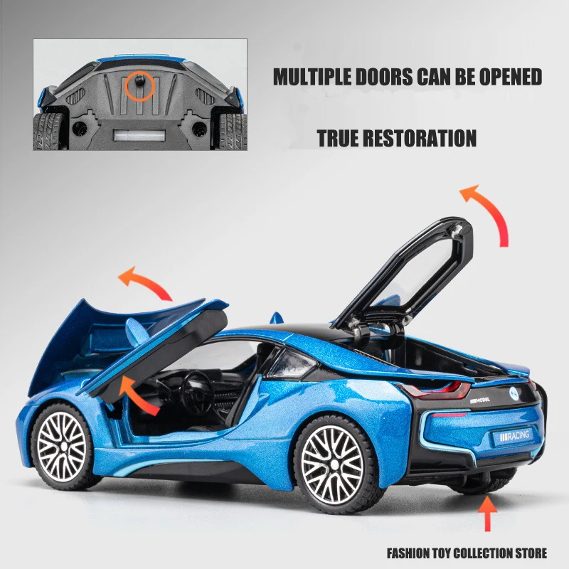 Modelo de Coche I8 1:32, Aleación Fundida a Presión con Luz y Sonido, Regalo para Niños