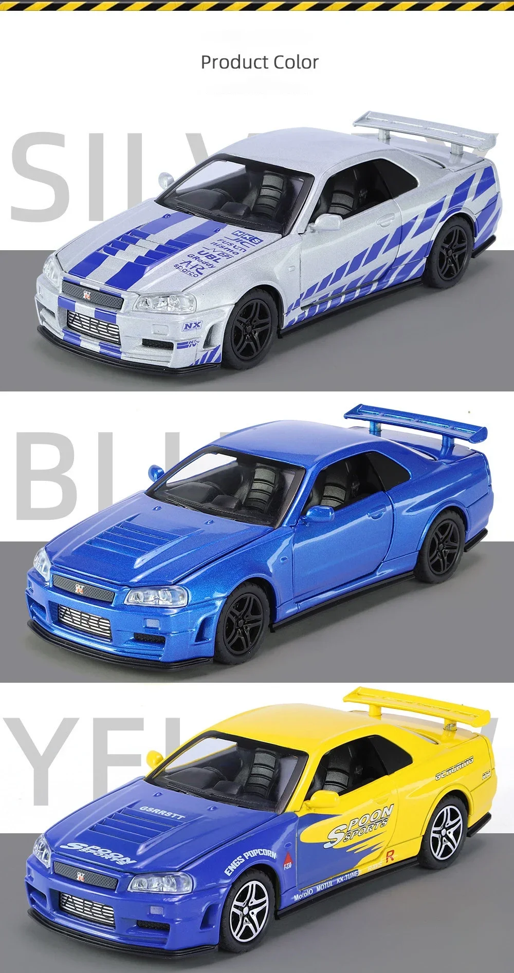 Nissan Skyline GTR R34 1:32, Modelo Deportivo con Luz y Sonido