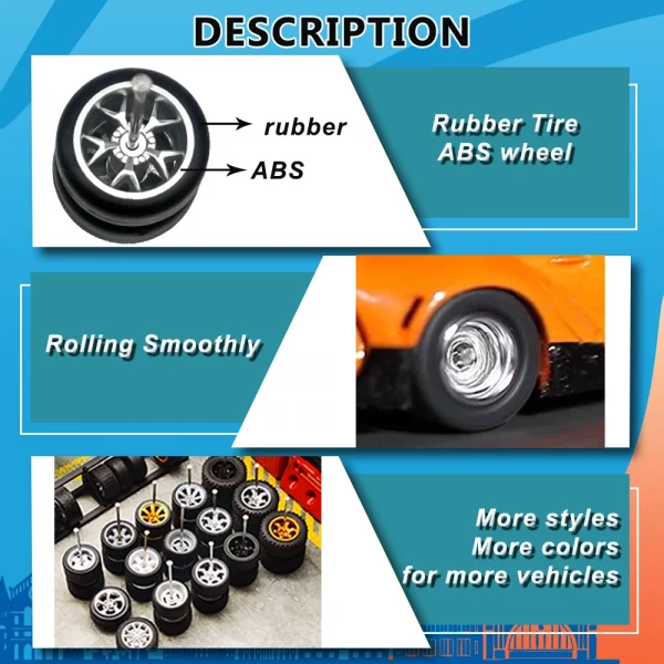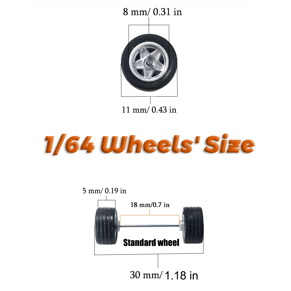 Ruedas 1/64 con Neumáticos de Goma para Hotwheels (5 Juegos)
