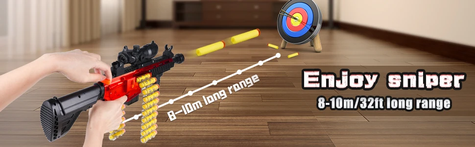 - 【Great Gift for kids】 Ideal choice for kids themed birthday parties Christmas,Children’s Day,family gatherings or outdoor entertainment; Highly recommended for kids age 6+; You will really love the look and design,this is a amazing toy gun for kids boys and girls that are fanatic for Nerf; It’s a fantastic toys for 6 7 8 9 10 years old boys and girls