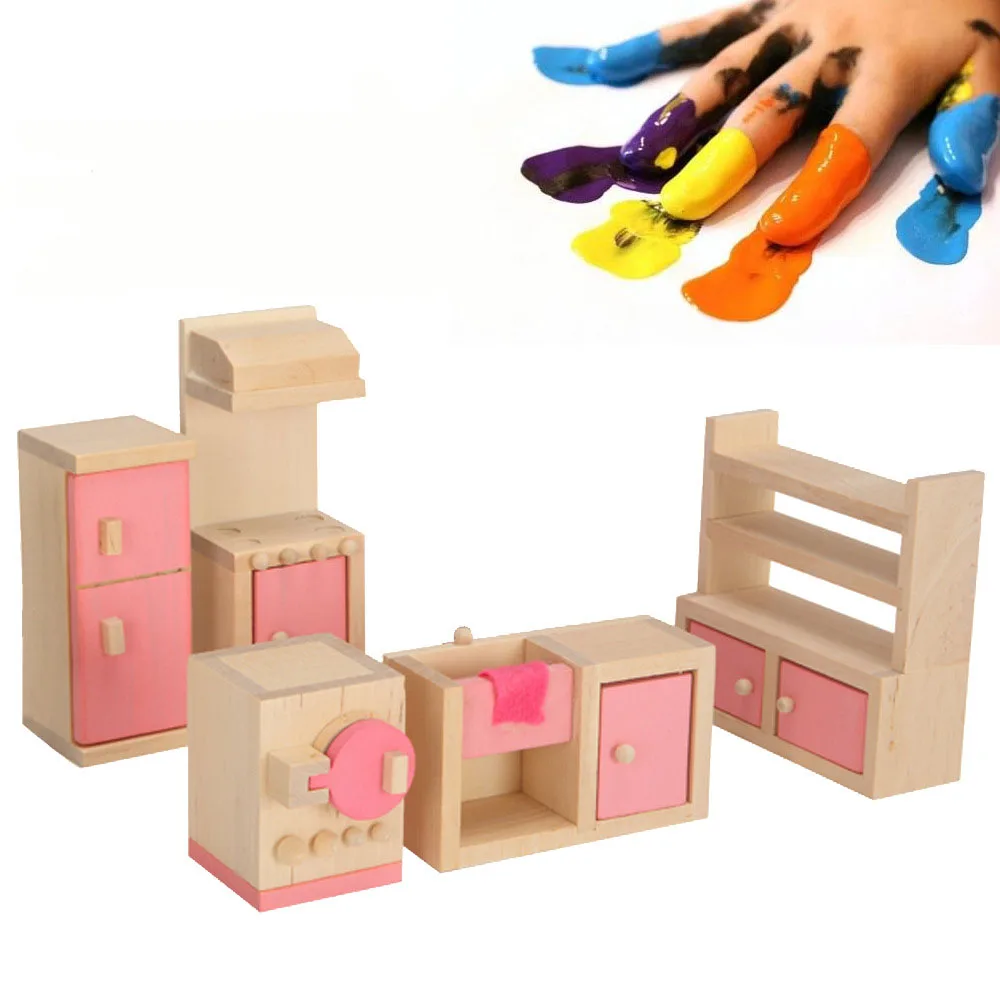 Muebles de casa de muñecas de madera, juguete en miniatura para muñecas